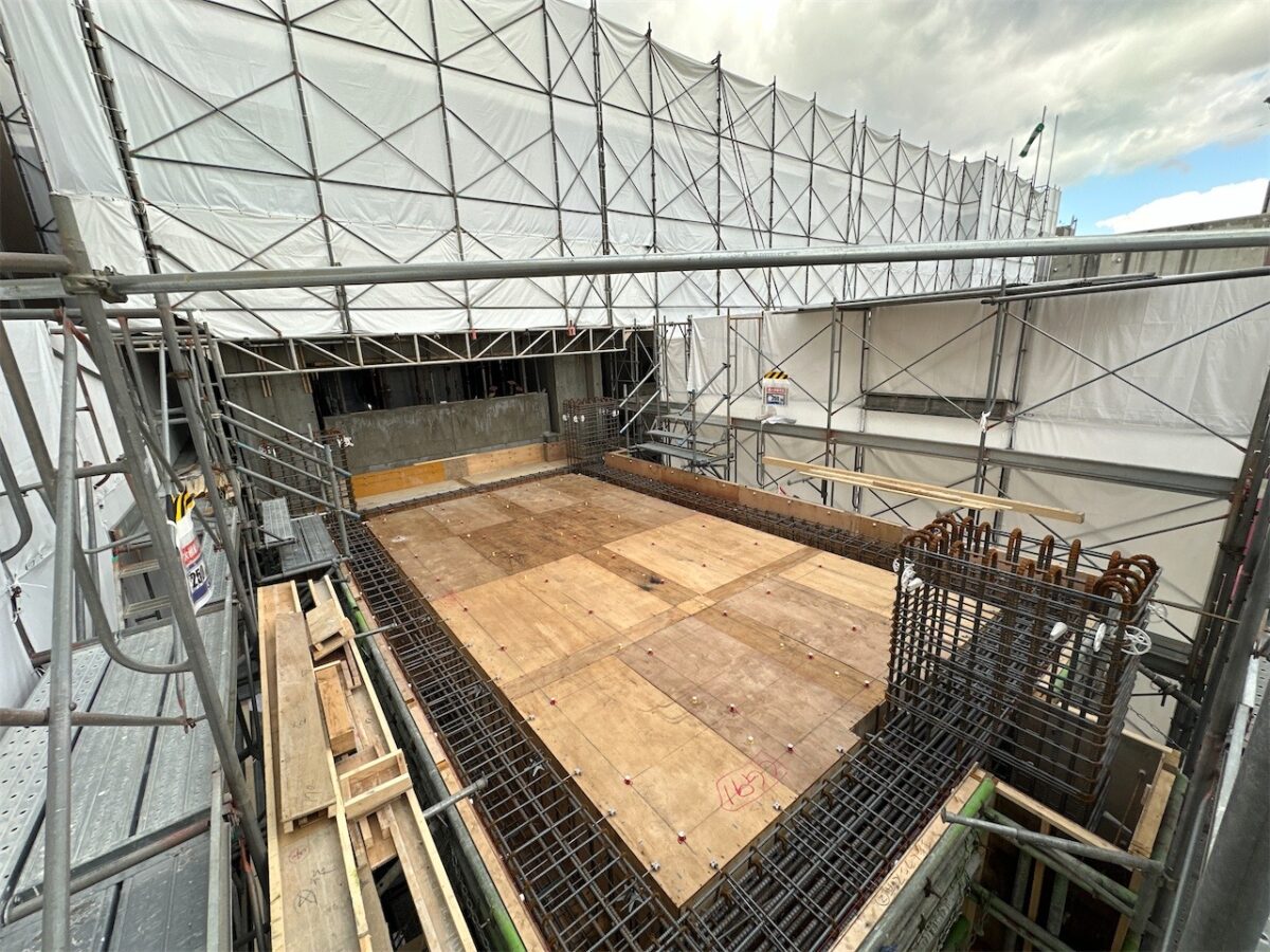 1階梁・スラブ脱型・ピット内の脱型と内部でも少しづつ作業が進んでおります。安全作業で努めてまいります。