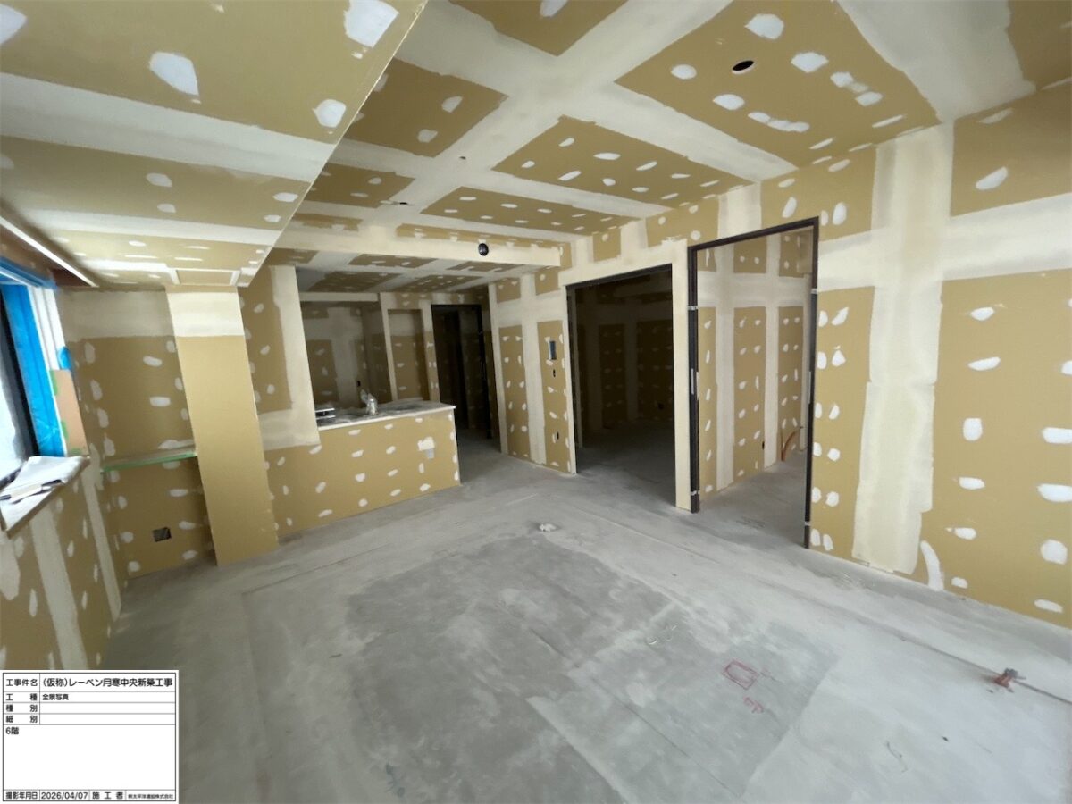 内部は2階~6階で軽量・ボード・床・キッチン等の施工中です。