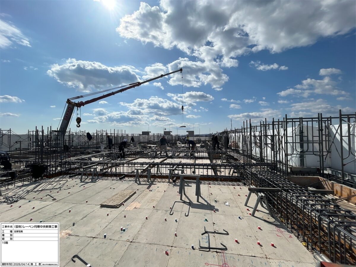 現在の躯体作業は来週の14階立ち上がり打設に向けて、配筋、型枠建て込み作業を行っています。