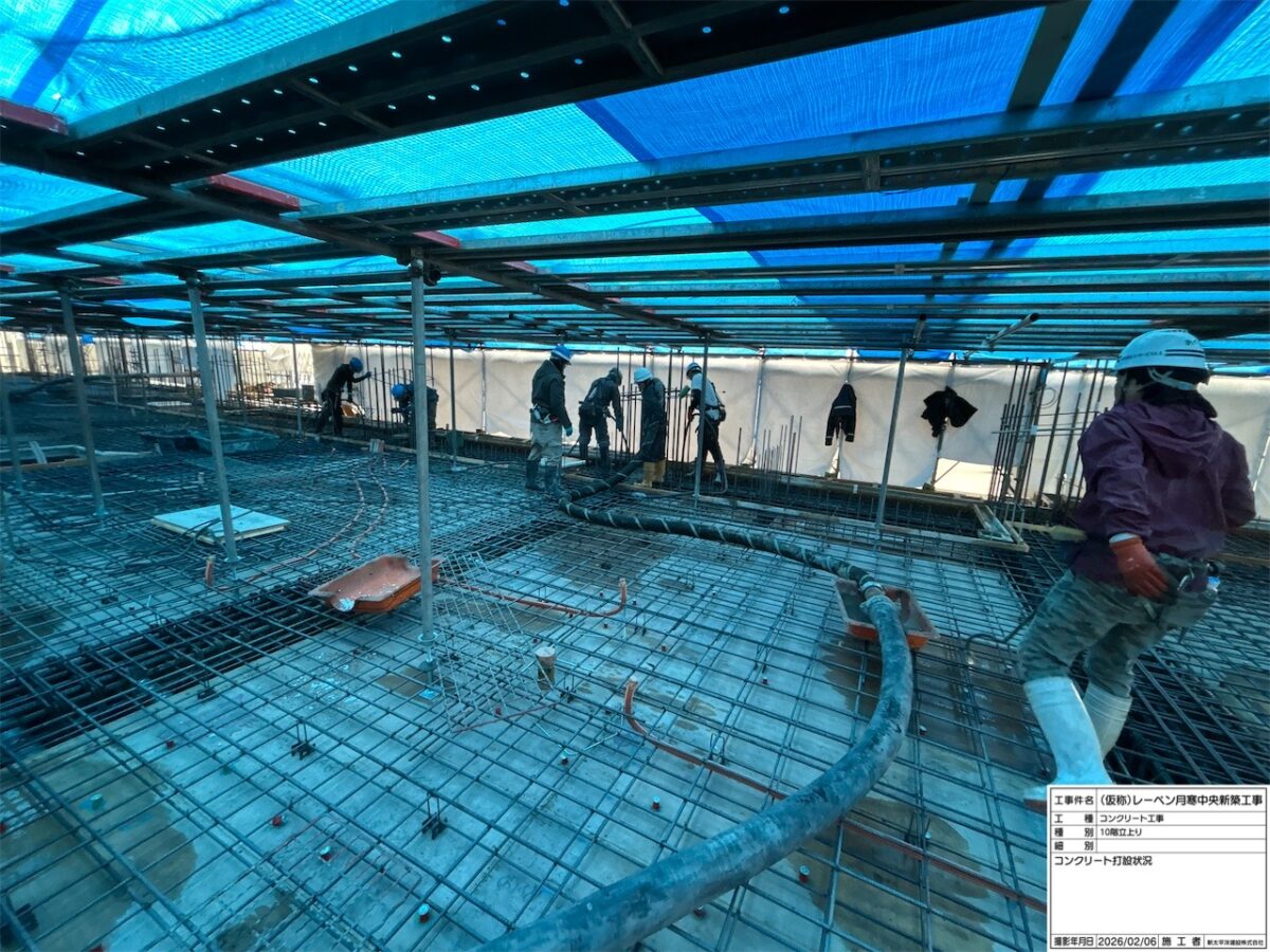 躯体工事は、2月6日に10階立上りCON打設を控えております。