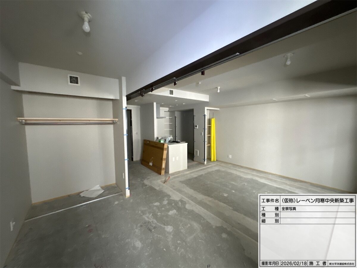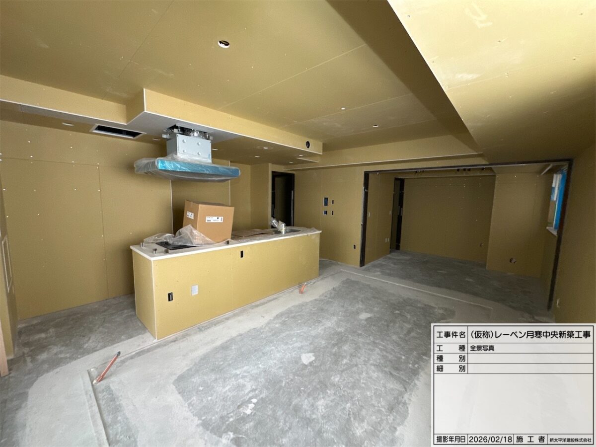 内装工事ですが、2階から9階まで順調に進んでいて、床・壁・UB・キッチン部屋全体を作業しています。