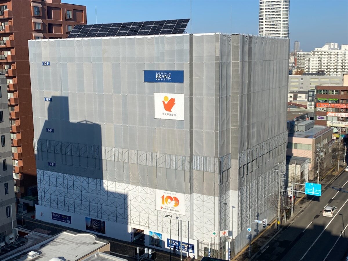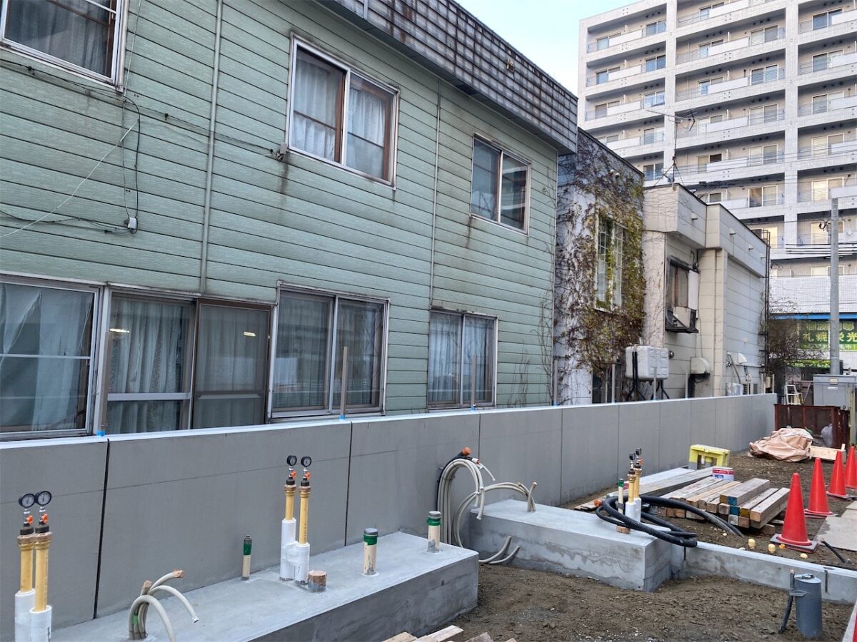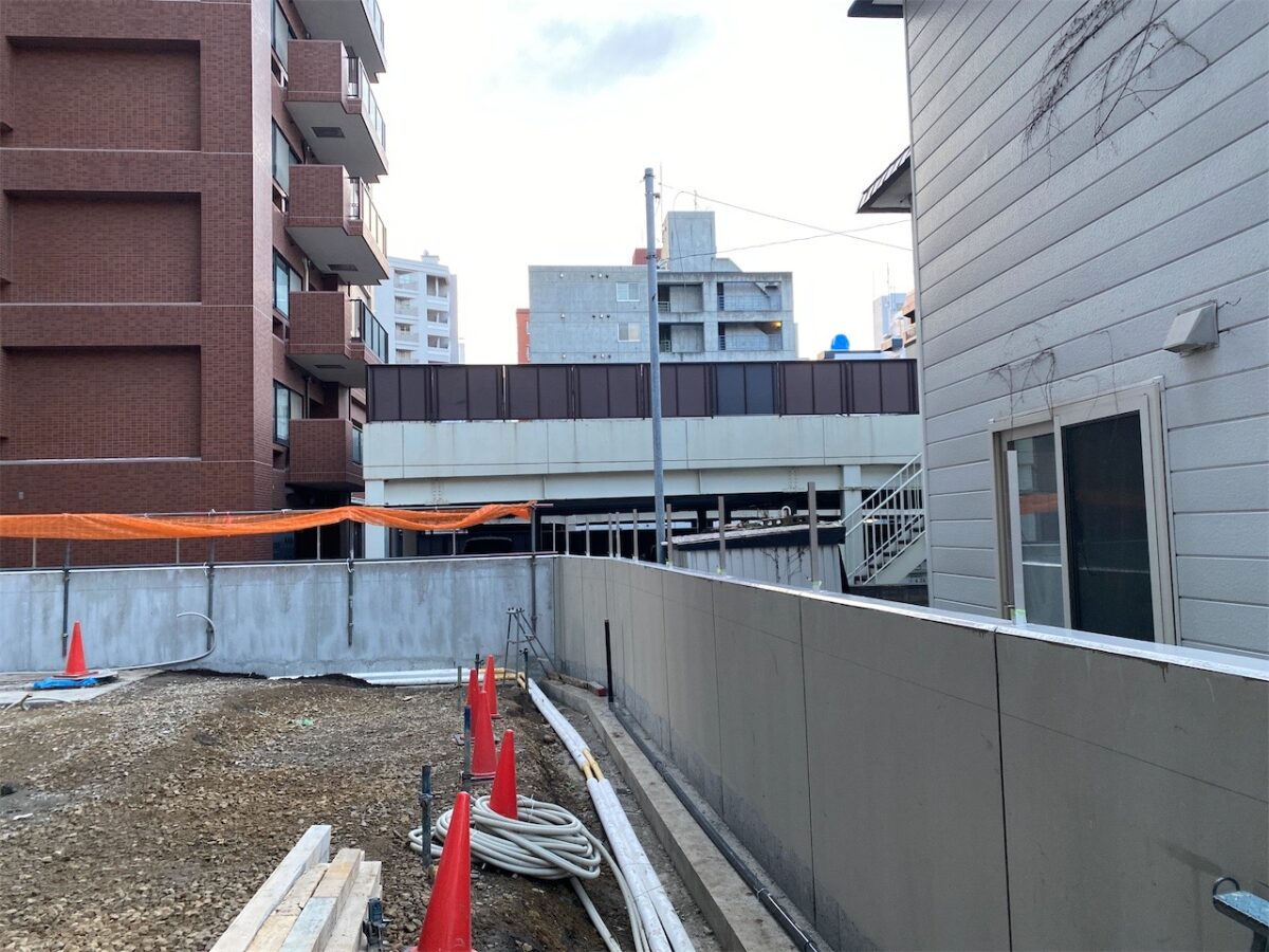 本工事は、分譲マンションの新築工事となります。南1条通に面しており、交通量が多い中での工事となります。
