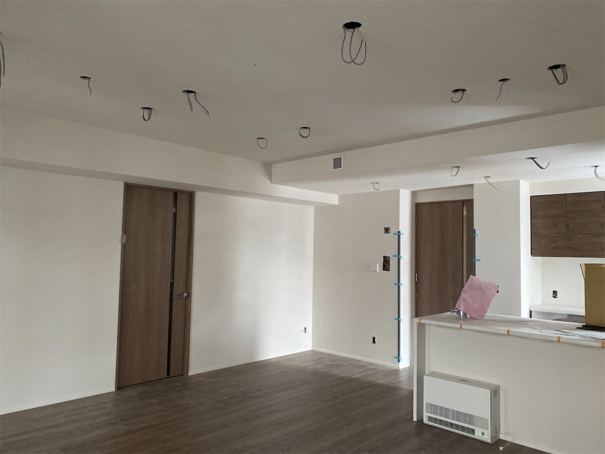 内装は引き続き、軽量・ボード・クロス・キッチンなどの取付が行われています。