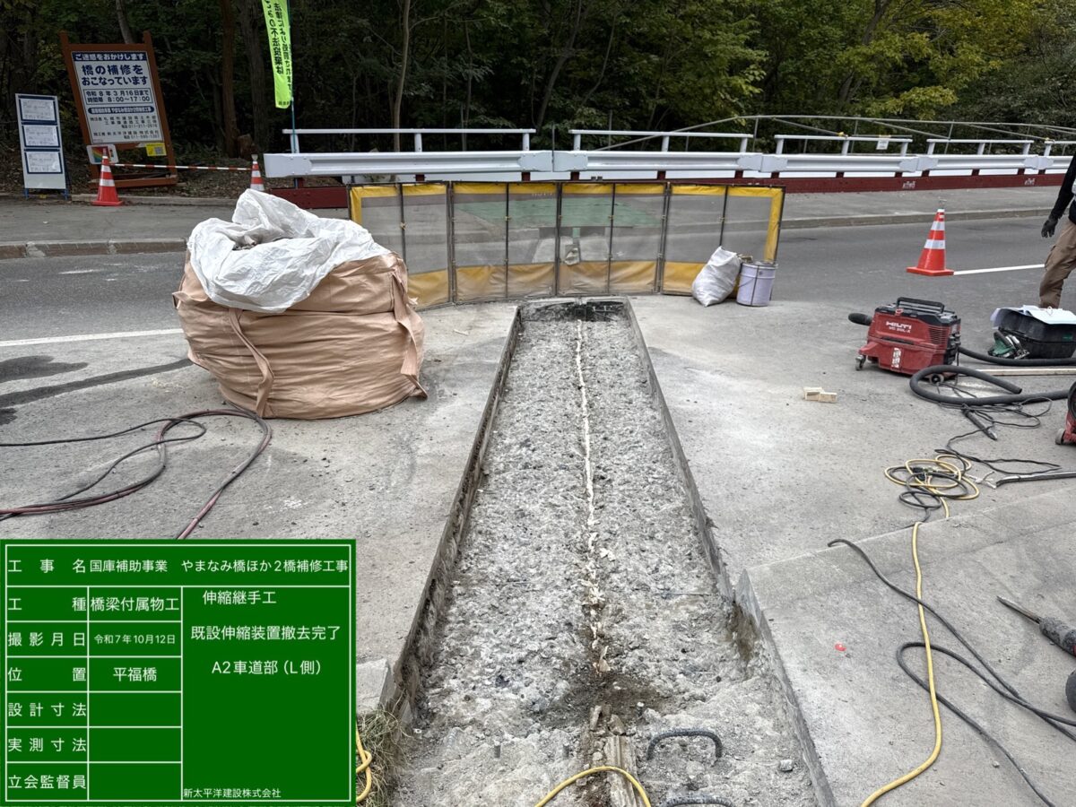 盤渓1号橋にて11月6,7日に伸縮装置撤去・設置作業。
