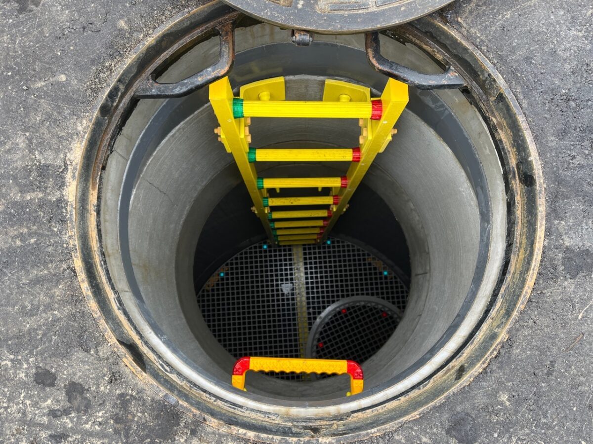 この時期は雨が多く、立坑の昇降するステップが滑りやすくなるので転落・墜落災害の無いようセフティーブロックを必ず使用し、昇降時には手に物を持って行わないよう徹底していきます。