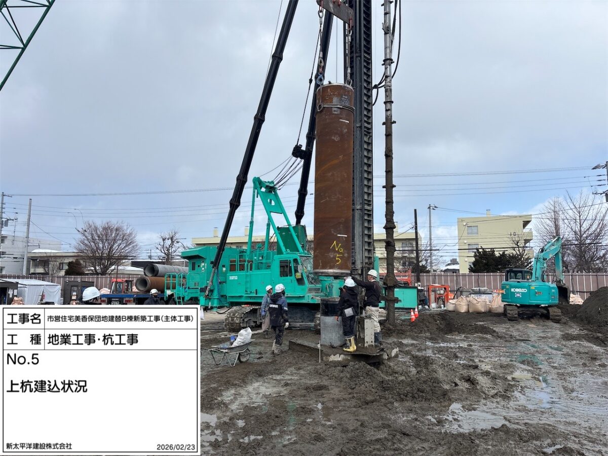 2月2日から本杭を1日5本打設の予定で作業を開始します。