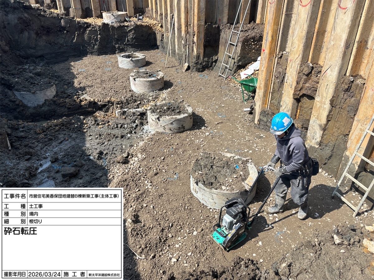 近隣の方々には、振動・騒音でご迷惑をおかけしておりますが、安全第一で努めてまいりますのでご理解ご協力のほどよろしくお願いいたします。