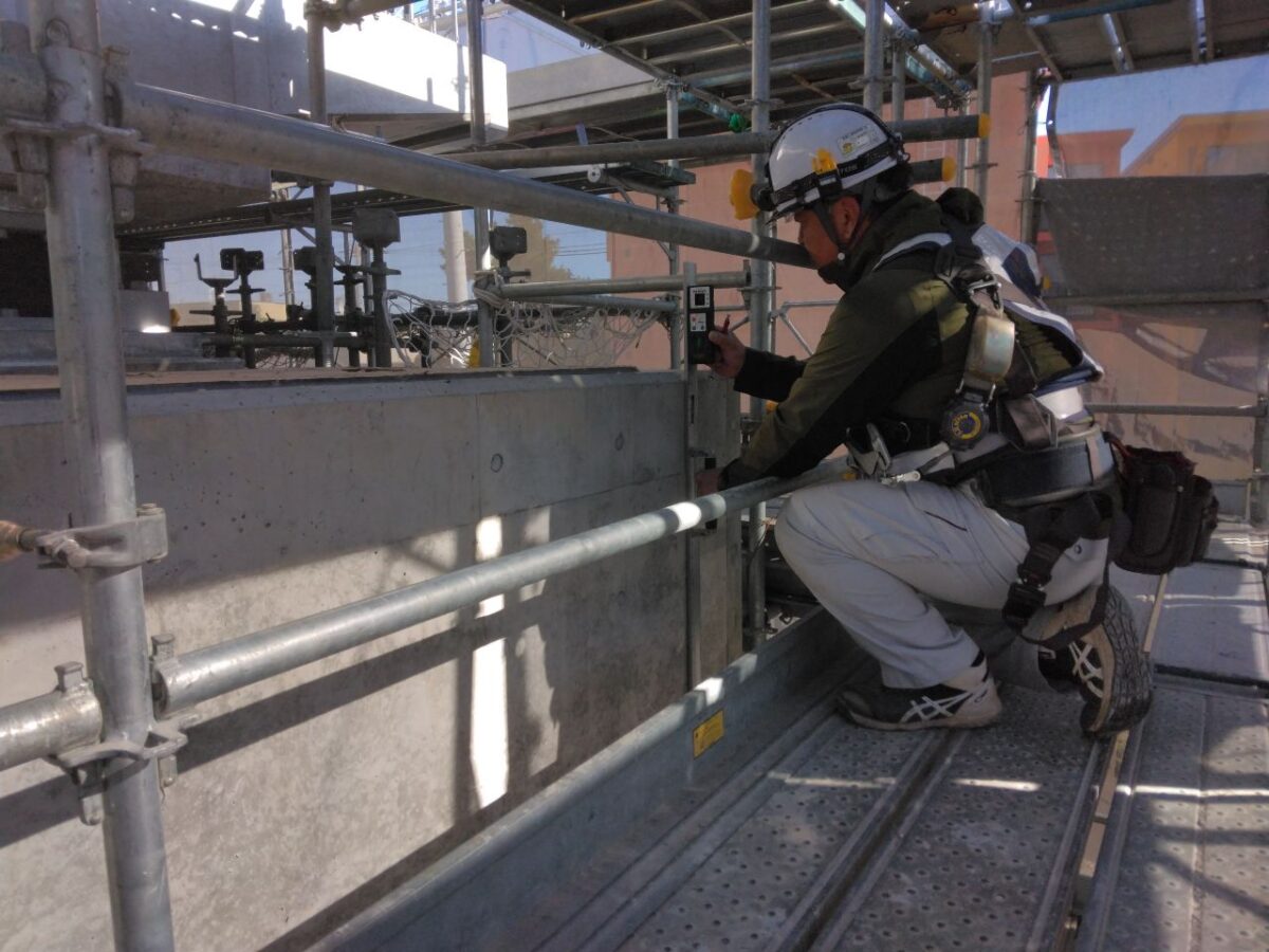 7月22日に起工測量及び設計照査を行うための測量用足場を設置しておりましたが、起工測量が完了しましたので、足場を解体いたしました。