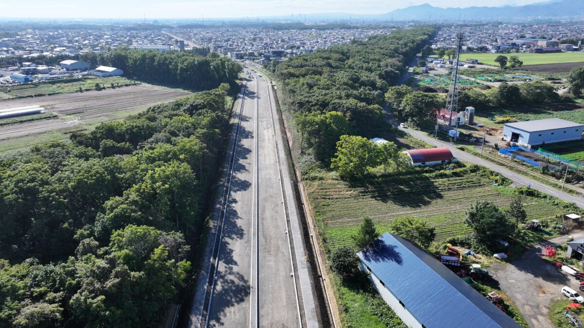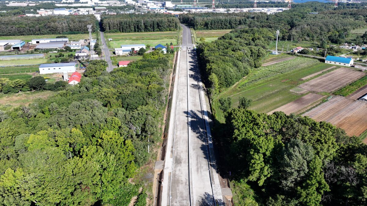 この工事は、花川通から重要港湾である石狩湾新港地域へ延伸する新しい道路を造る工事です。
